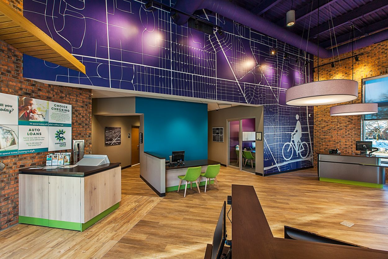 After completing the new 5,000 square foot building for Community Choice Credit Union in Shelby, MI, our client wanted to create a Royal Oak presence. Our client desired an open floor plan to promote a more collaborative banking style that is focused on customer service and customer interaction. They didn’t want there to be a division between bank tellers and bank members. This project used several special features, such as; glazed orange brick, an exterior curved metal roof, and metalwork panels. The foundation consisted of timber and steel piles as well as grade beams and stem walls. This building also used a Geo Vent and Geo Seal for sub slab mitigation. Ronnisch Construction was proud to assist our repeat client as they expanded locations.