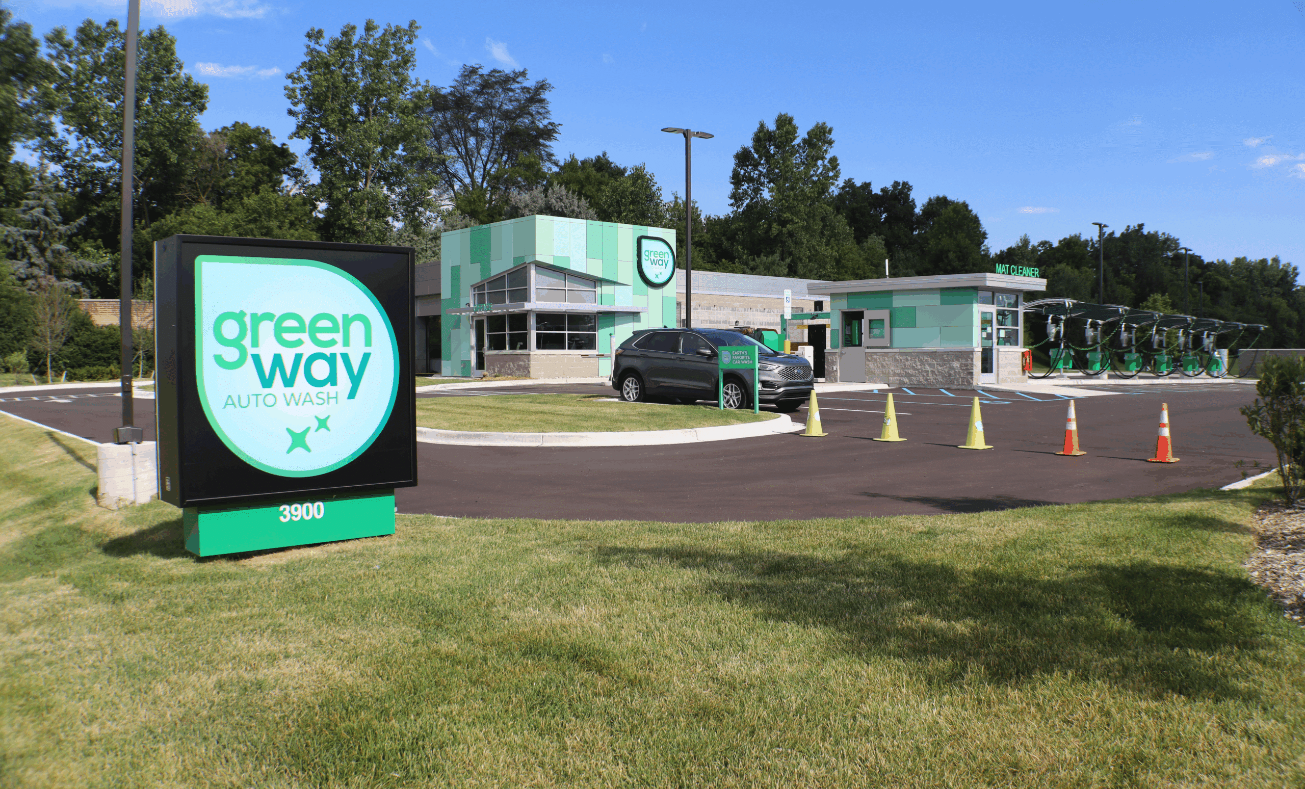 GreenWay Auto Wash in Fenton, Michigan, is a 4,172 square foot facility designed with cutting-edge technology and a strong commitment to environmental sustainability. The car wash features an innovative over/under conveyor system that includes a manual high-pressure pre-wash prep performed by staff, ensuring every vehicle receives a thorough and meticulous initial wash. GreenWay Auto Wash exclusively uses eco-friendly premium soaps and waxes, providing effective cleaning and protection while minimizing environmental impact. The facility also boasts a Bio Complete Water Restoration system that removes soaps, waxes, and dirt from used water, allowing it to be recycled and reused. This advanced system significantly reduces water consumption and waste, aligning with GreenWay’s dedication to sustainability.