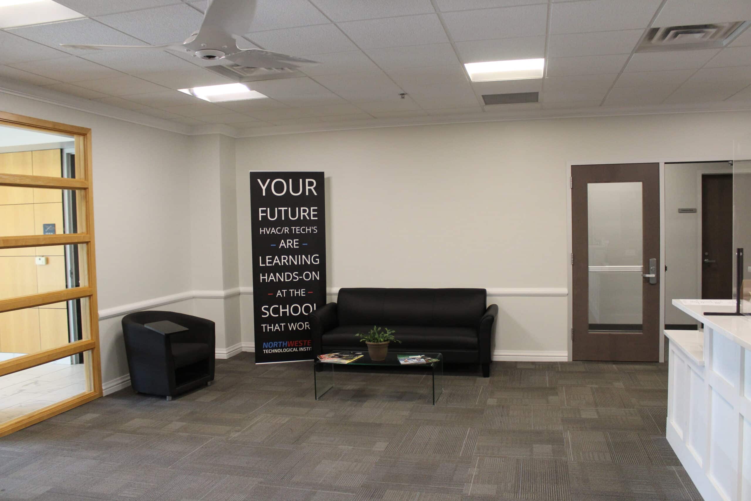 Northwestern Technological Institute called on Ronnisch Construction Group when their growth plans included the conversion of existing office space to classrooms and the upgrading of the facility to accommodate a large student population. The space was converted from commercial office space to classroom space to house a library, student lounge, a kitchenette, and classrooms for electrical, heating, and troubleshooting instruction. Improvements included new flooring consisting of both ceramic and luxury vinyl tile materials, a re-work of the fire protection system, new HVAC to accommodate the school use, and new lighting and power systems. The new area also included administrative, financial aid, and admissions offices to serve the school.