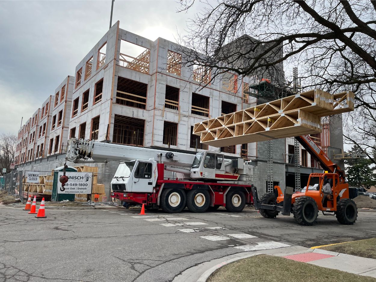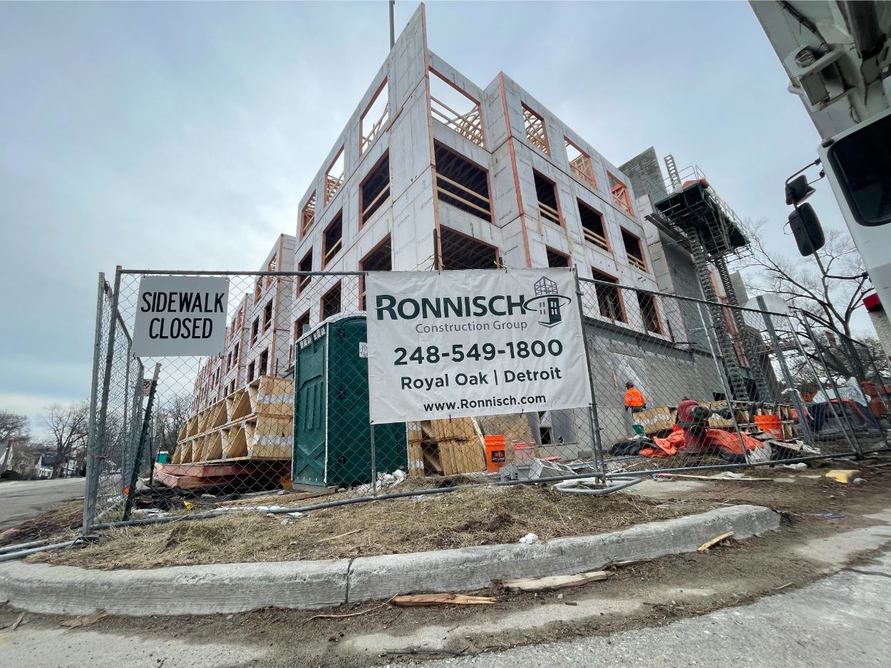 Ronnisch Construction Group was selected as the Construction Manager for this multi-family project in the heart of Royal Oak. Located on the south side of 6th Street, between Williams and Troy Street, the project is a 5-story, wood-framed structure, with a two-level concrete parking deck below. This 69-unit complex offers the most modern and up-to-date amenities for the Royal Oak and metropolitan Detroit market. Construction has begun as of November 2021 and completion is scheduled for the fall of 2022. The zero-lot-line site and two level below grade parking provides some construction challenges that require the experience and expertise of Ronnisch Construction Group. The contractual agreement is unique in that some contracts are held directly by the owner. This cooperative arrangement is indicative of the flexible and high-quality service provided by Ronnisch Construction Group.